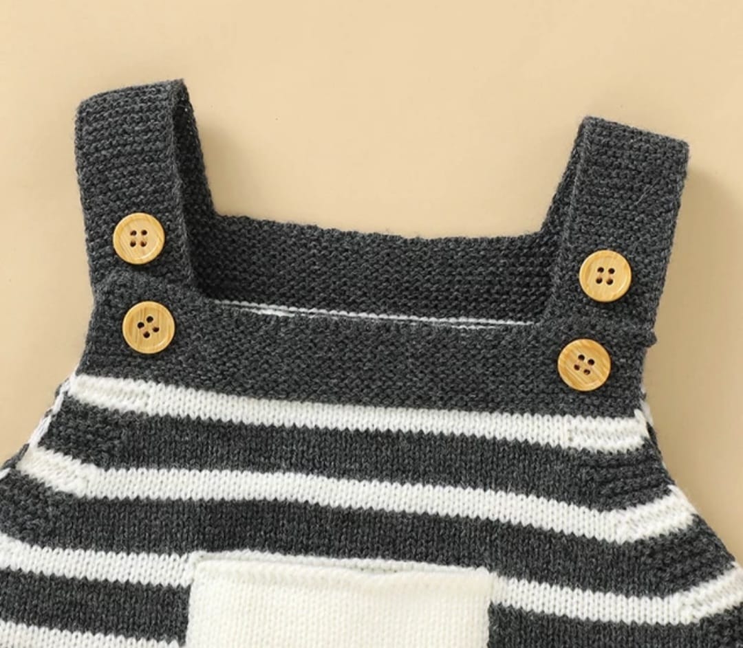 Made with an overall slightly stretch fabric, it makes it a comfortable and snuggly wear all year around. It has an added tiny pocket in front for design and buttons between the legs for those quick nappy changes.