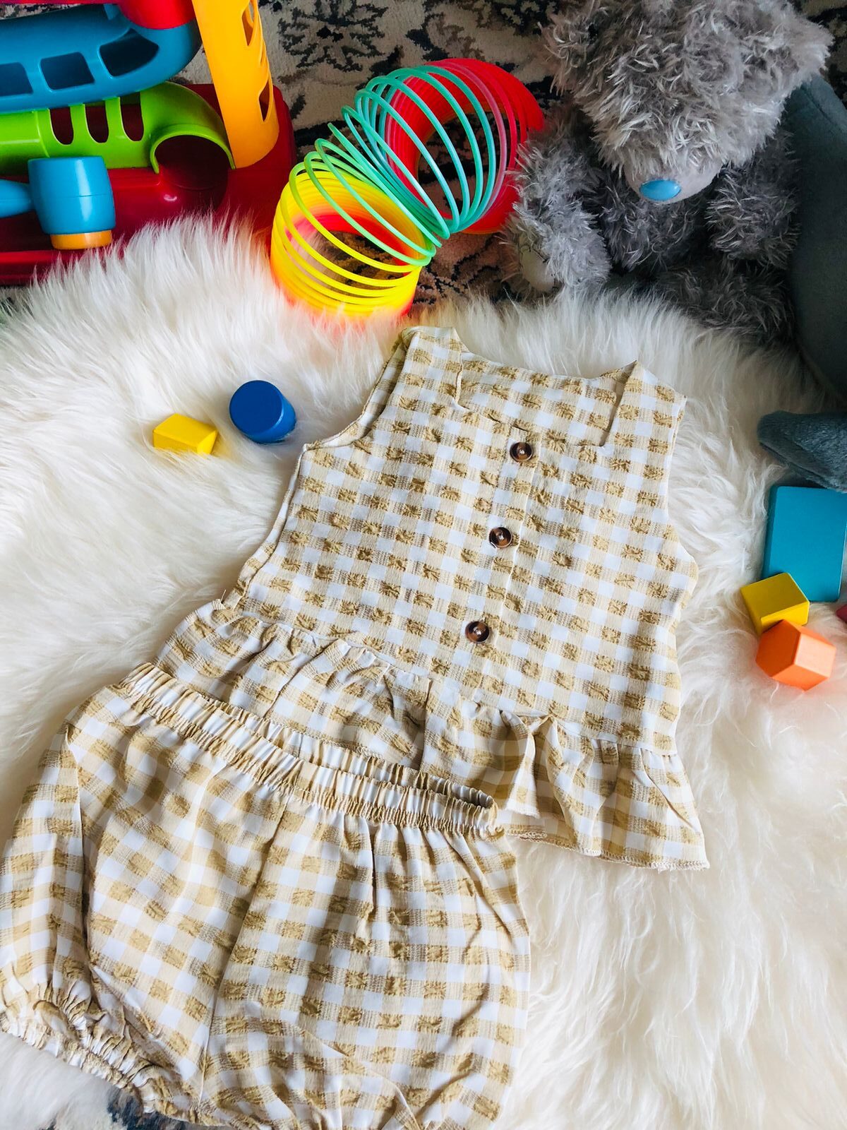 Mon LouLou Collections Baby Harper Gingham Sand Set SAND BABY