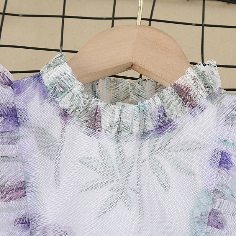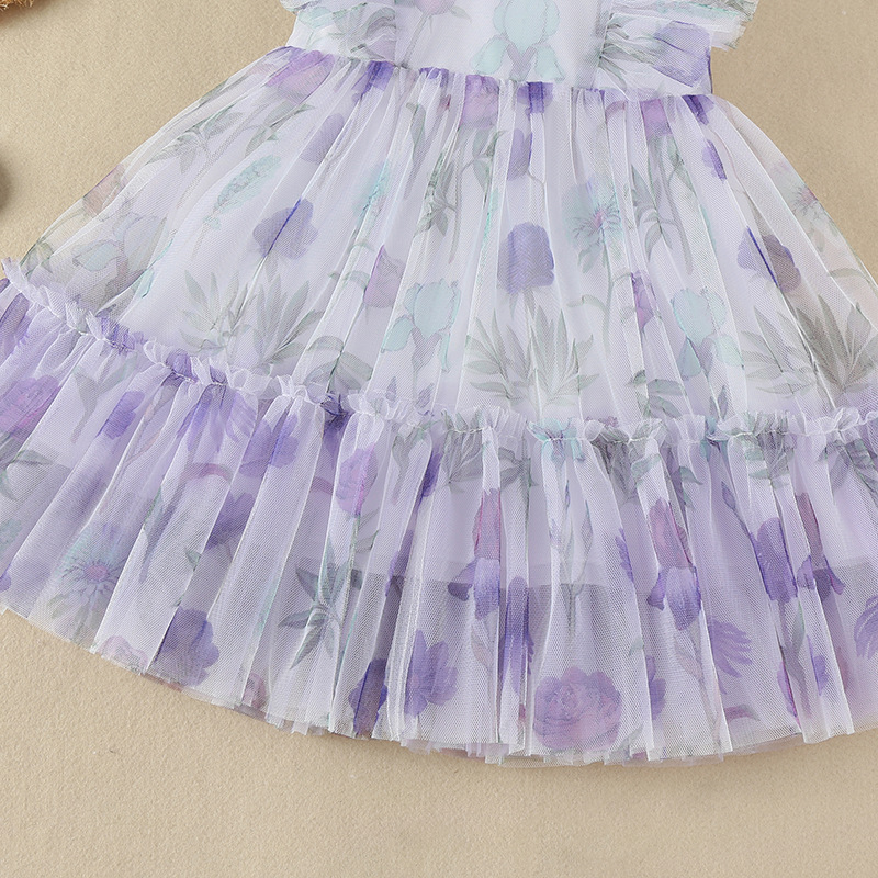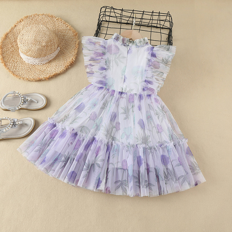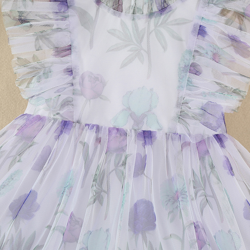 Mon LouLou Collections Girls Smart Casual Wear Viola Tulle Dress WHITE PURPLE